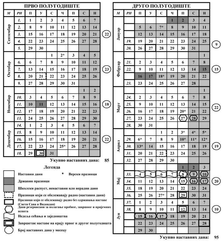 U okviru 36, odnosno 34 petodnevne nastavne sedmice, škola je u obavezi da godišnjim planom rada ravnomerno rasporedi dane u sedmici.