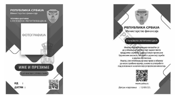 PRAVILNIKO SLUŽBENIM LEGITIMACIJAMA CARINSKIH SLUŽBENIKA("Sl. glasnik RS", br. 83/2025) |