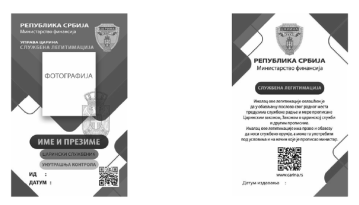 SLUŽBENA LEGITIMACIJA CARINSKIH SLUŽBENIKA