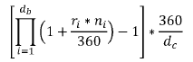 ni je, za potrebe TARGET dana "i" u relevantnom Posmatranom periodu, broj kalendarskih dana na koje se primenjuje stopa rikoji predstavlja broj kalendarskih dana od tog TARGET dana "i" (uključujući i taj dan) do narednog TARGET dana (isključujući taj dan), bez obzira da li je taj naredni TARGET dan uključen u Posmatranom periodu. (Stoga, većinom dana, ni će biti 1, ali petkom će generalno biti 3; biće veći od 1 i TARGET danima koji prethode praznicima).