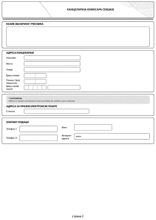 2) odluka o imenovanju zastupnika Kancelarije (jednog ili više), koja, između ostalog, sadrži i funkciju zastupnika Kancelarije (Komesar sekcije/zamenik Komesara sekcije).