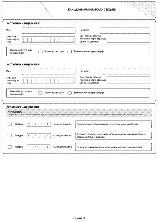 7) podatke o zastupnicima i njihovim funkcijama (Komesar sekcije/zamenik Komesara sekcije), i to za fizička lica državljane Republike Srbije lično ime (ime i prezime) i jedinstveni matični broj građana, a za strana fizička lica lično ime, broj pasoša i država izdavanja, odnosno evidencijski broj za stranca, odnosno broj lične karte stranca i zemlja izdavanja u skladu sa propisima kojima se uređuju uslovi za ulazak, kretanje i boravak stranaca na teritoriji Republike Srbije;