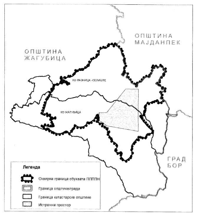 2. Okvirna granica Prostornog plana obuhvata delove teritorije opštine Žagubica, i to: delove katastarskih opština Laznica - Selište i Žagubica.