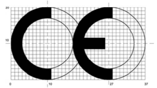 Različite komponente CE znaka treba da imaju, suštinski, istu visinu koja ne sme biti manja od 5 mm.