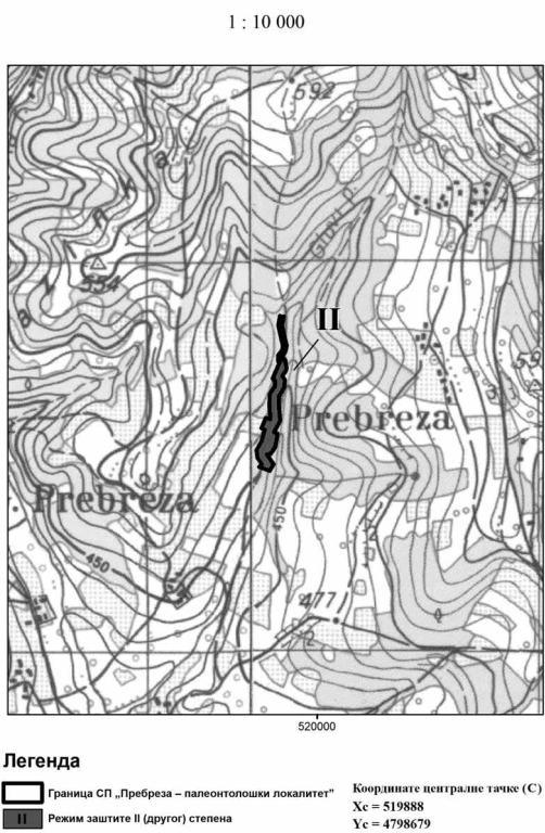 OPIS GRANICE I GRAFIČKI PRIKAZ SPOMENIKA PRIRODE "PREBREZA - PALEONTOLOŠKI LOKALITET"