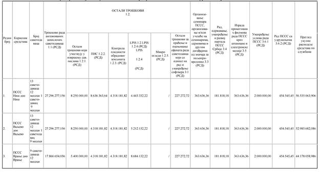 Ostali troškovi koji učestvuju u izvršenju savetodavnih poslova koji se odnose na davanje saveta na osnovu obavljene kontrole plodnosti obradivog poljoprivrednog zemljišta, tekuće popravke, održavanje i uređivanje poslovnog prostora, kao i za nabavku automobila, kancelarijskog materijala, računarske opreme, pokretnih aparata i opreme za brze analize u poljoprivredi, smart uređaja, GPS uređaja, dronova, softvera i/ili drugih oznaka s ciljem vizuelnog brendiranja PSSS |