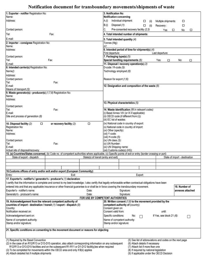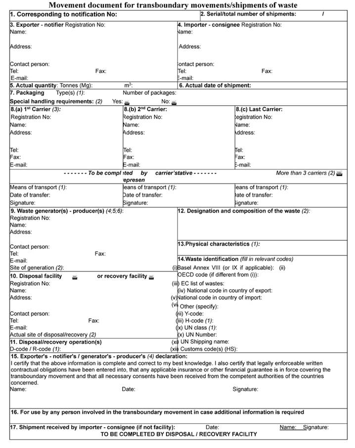 DOKUMENTA O PREKOGRANIČNOM KRETANJU OTPADA KOJI NE PODLEŽE KONTROLNOM (NOTIFIKACIONOM) POSTUPKU