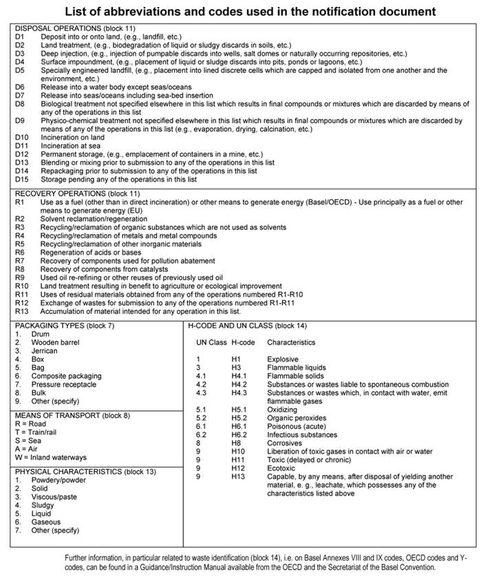 Polje 11: Podnosilac obaveštenja popunjava operacije odlaganja i/ili ponovnog iskorišćenja upisivanjem slova i broja. Podnosilac obaveštenja upisuje i vrstu tehnologije koja će biti primenjena, a navodi i razloge izvoza.