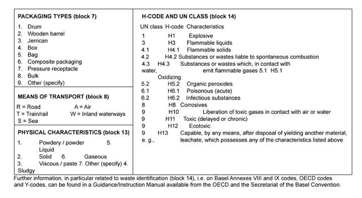 Polje 7: Podnosilac obaveštenja upisuje podatke o načinu pakovanja pošiljke, i to birajući jedan od sledećih brojeva (1. bačva, 2. drveno bure, 3. kanister, 4. sanduk, 5. kesa, 6. kompozitno pakovanje, 7. posuda pod pritiskom, 8. u rasutom stanju i 9. ostalo (precizirati)).
