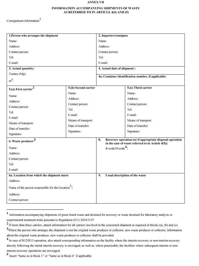 Sadržina, izgled i uputstvo za popunjavanje dokumenta o prekograničnom kretanju otpada otpada dati su u Prilogu 5, koji je odštampan uz ovu uredbu i čini njen sastavni deo.